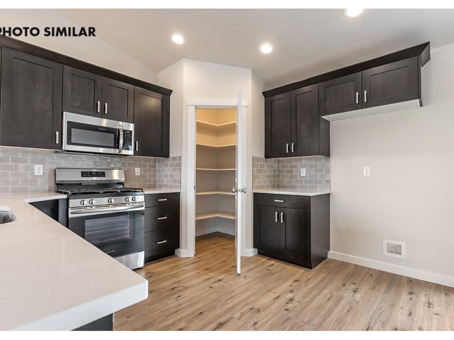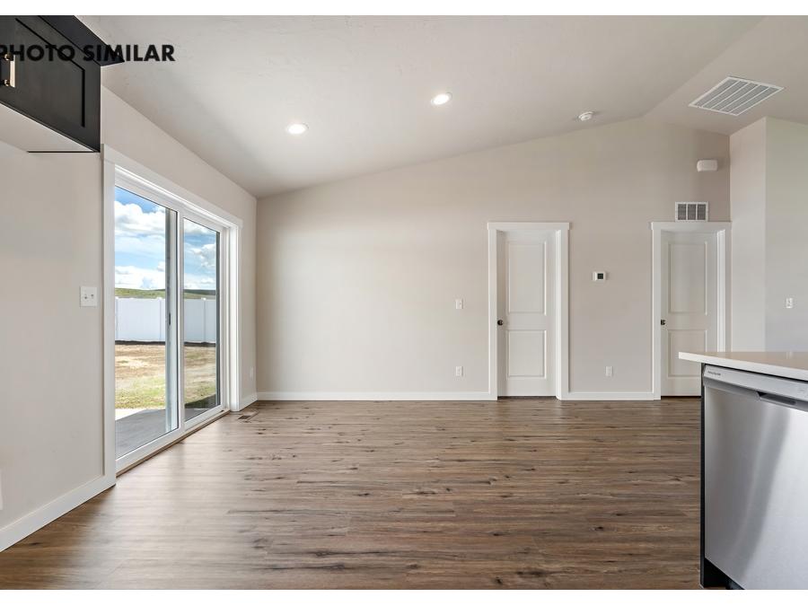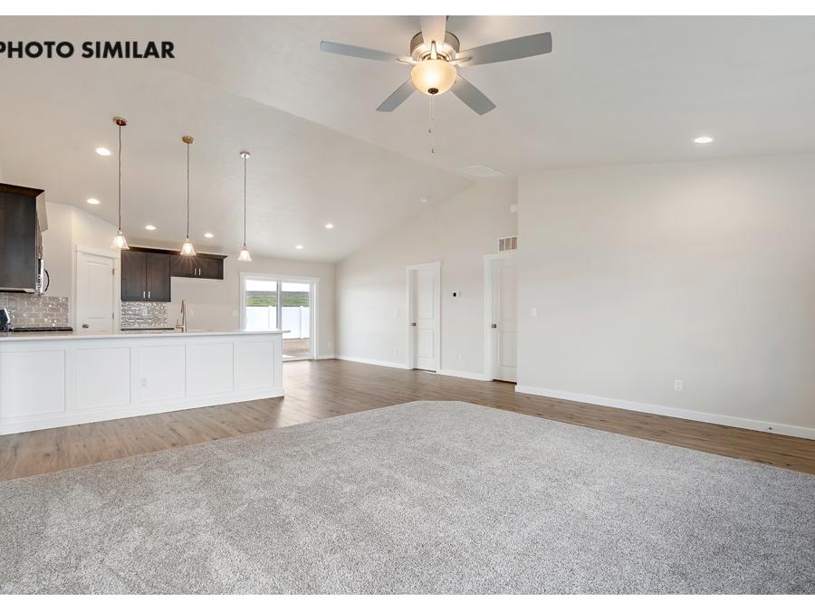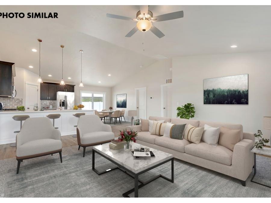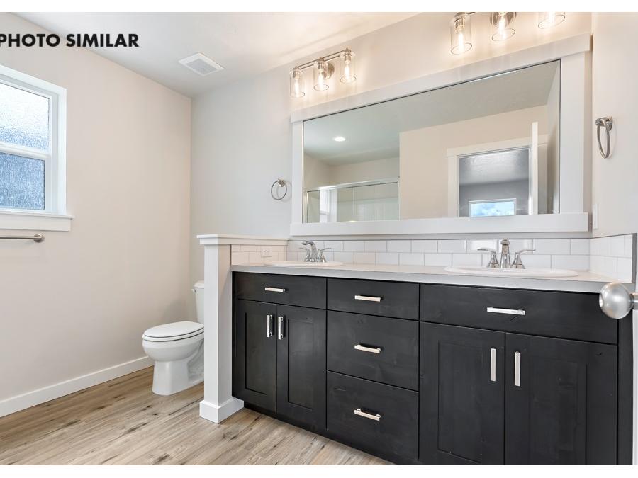 The Chamberlain, at 1,404 sq. ft., features three bedrooms, two bathrooms, a spacious kitchen and dining area, and a two-car garage. As you enter, you’re greeted by a cozy great room that sets the tone for the home. Beautiful granite countertops flow throughout the kitchen, which features Knotty Alder cabinets and stainless steel appliances. *Floorplan price is pre-lot.