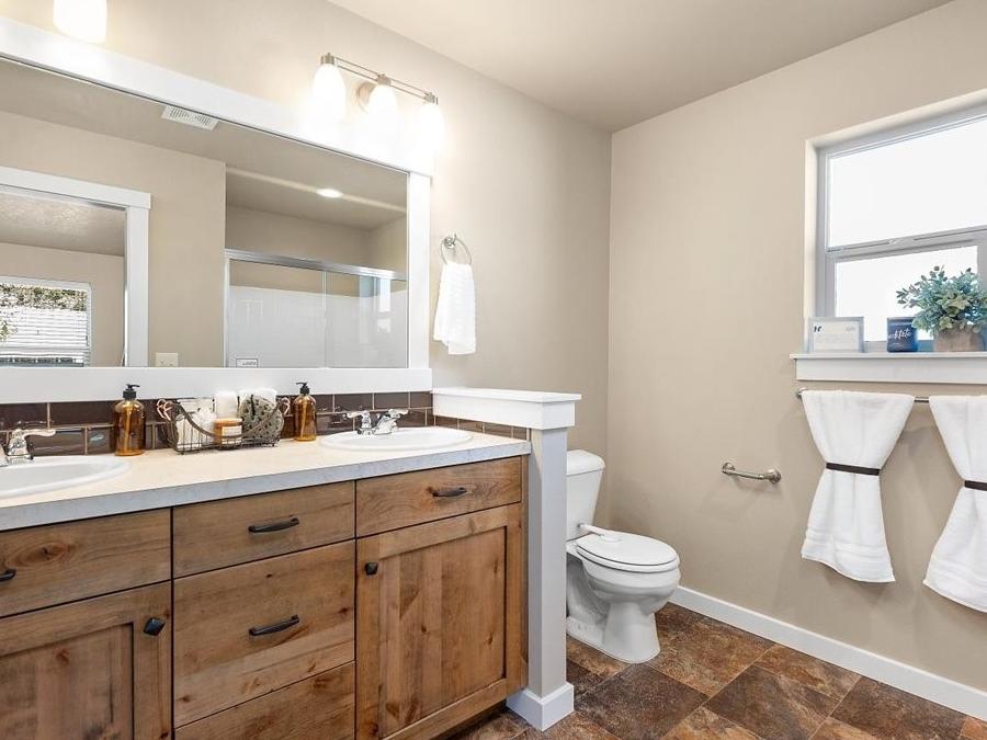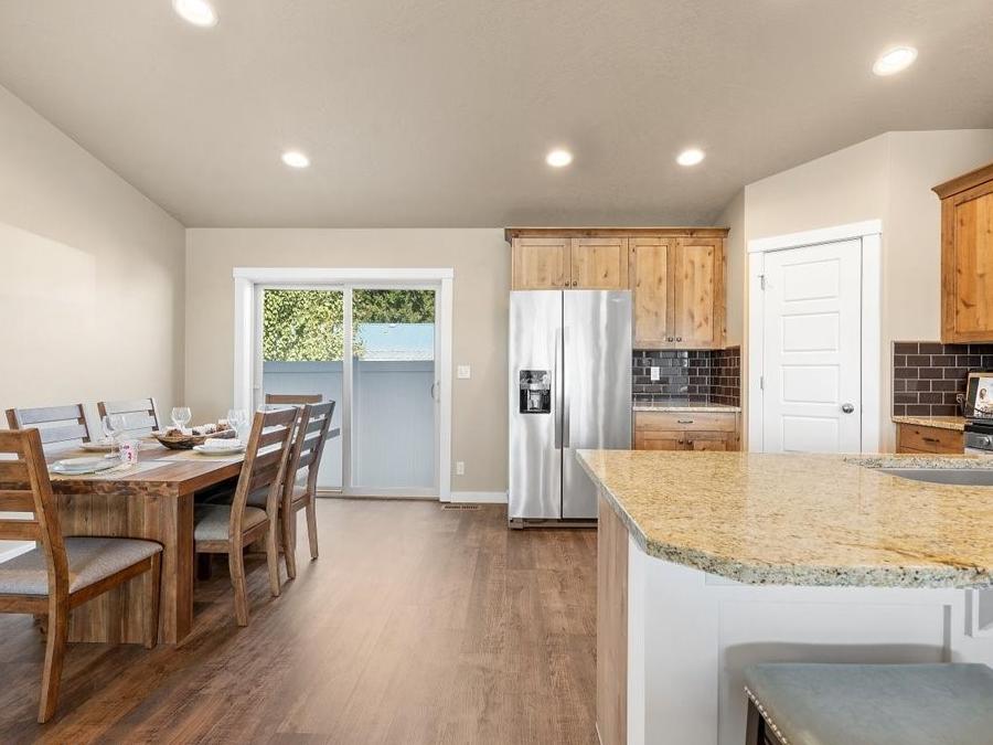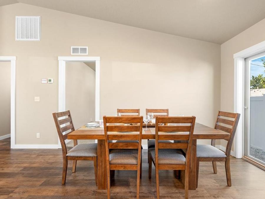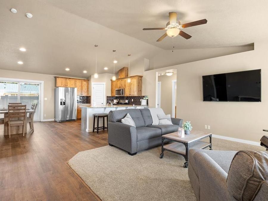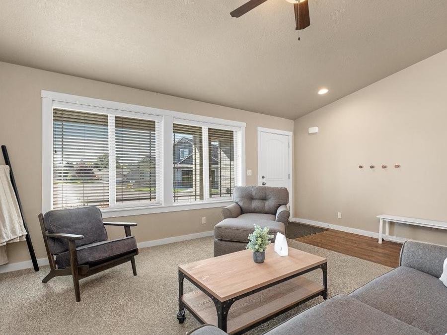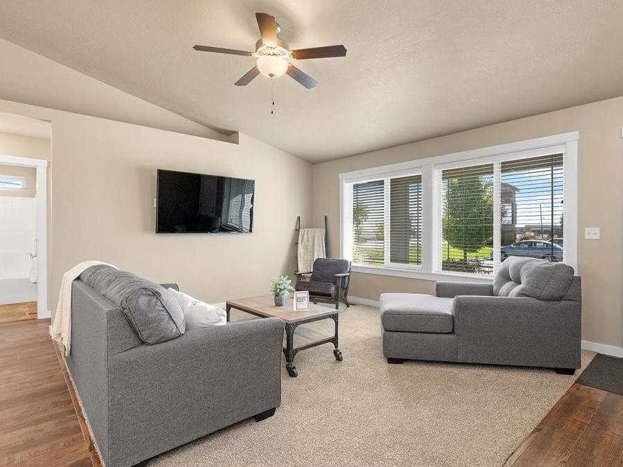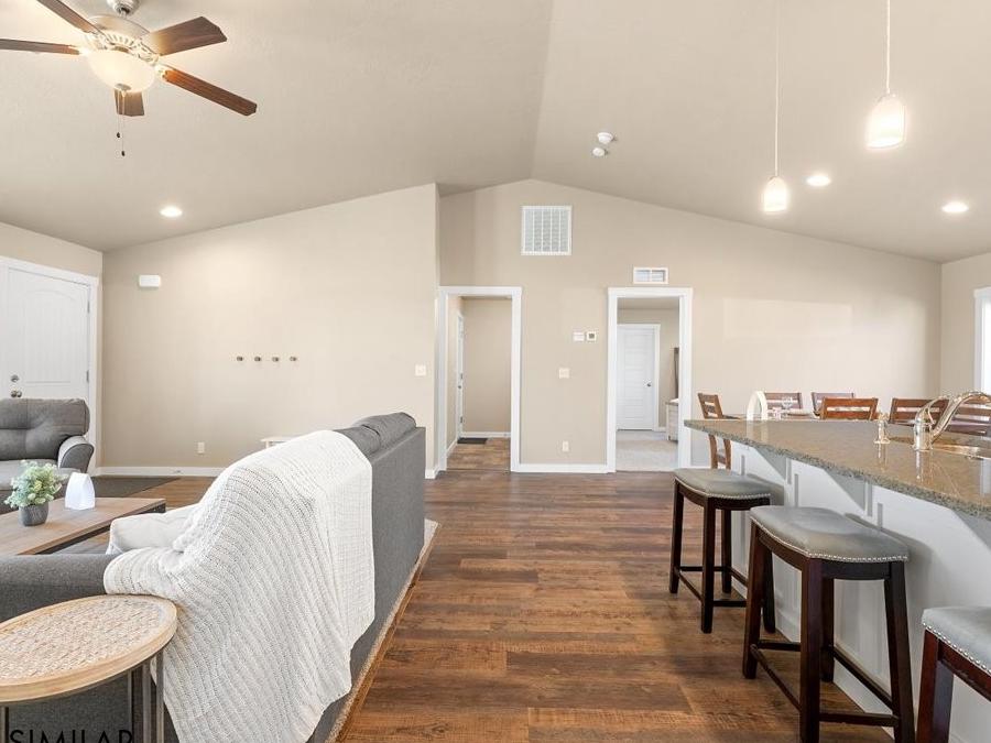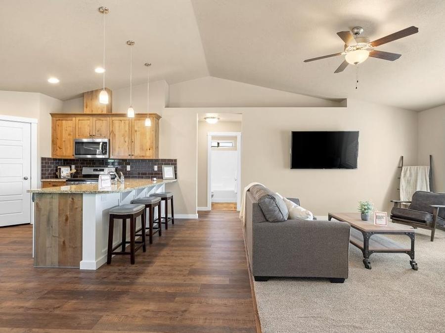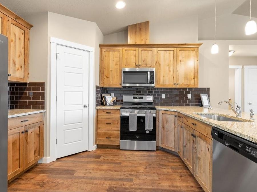Welcome to this charming new construction, featuring a spacious great room and beautiful kitchen with quartz countertops and warm knotty alder cabinets. Enjoy low-maintenance living with front and rear sod, full automatic sprinklers in both yards, and pressurized irrigation. The 2-car garage provides ample storage, while full rain gutters and natural gas add to the home's practicality and efficiency. The north-facing backyard offers a shady retreat—ideal for summer afternoons. The sales price does not include the buyer's agent compensation. We are happy to add buyer's agent compensation to the sales price. Photos are similar
