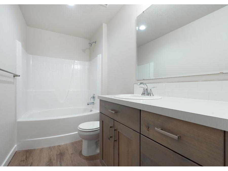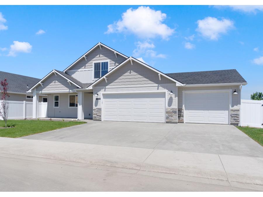 This popular Agile Homes floor plan offers plenty of space for the whole family. The kitchen is beautifully appointed with quartz counters and our new upgraded stainless farmhouse sink, while the master bathroom boasts a walk-in tile shower and a tile surround tub for a spa-like experience. Enjoy outdoor living on the covered patio, with the added convenience of full gutters. This home is designed for comfort, style, and practicality—don’t miss your chance to make it yours! The sales price does not include the buyer's agent compensation. We are happy to add buyer's agent compensation to the sales price.