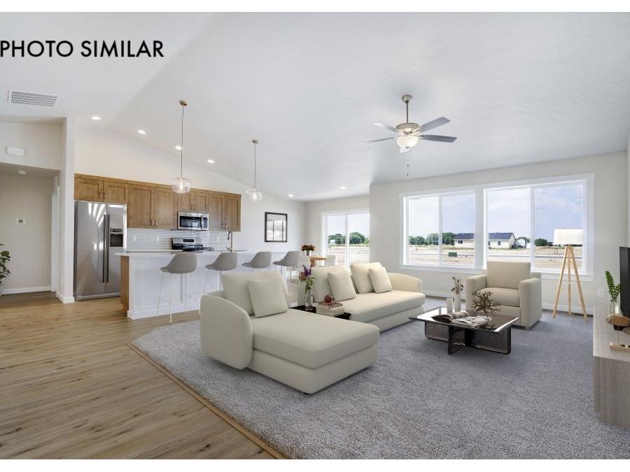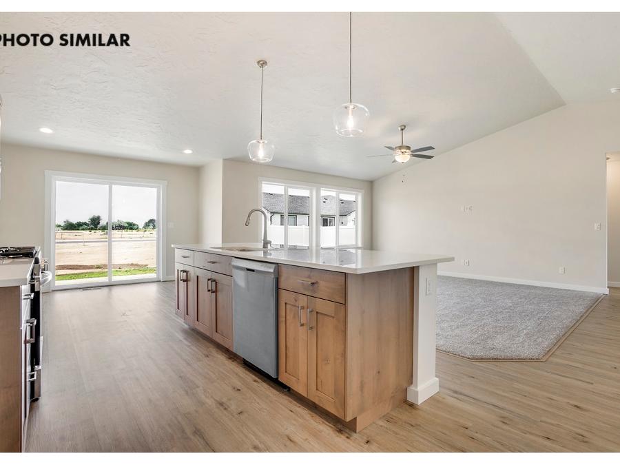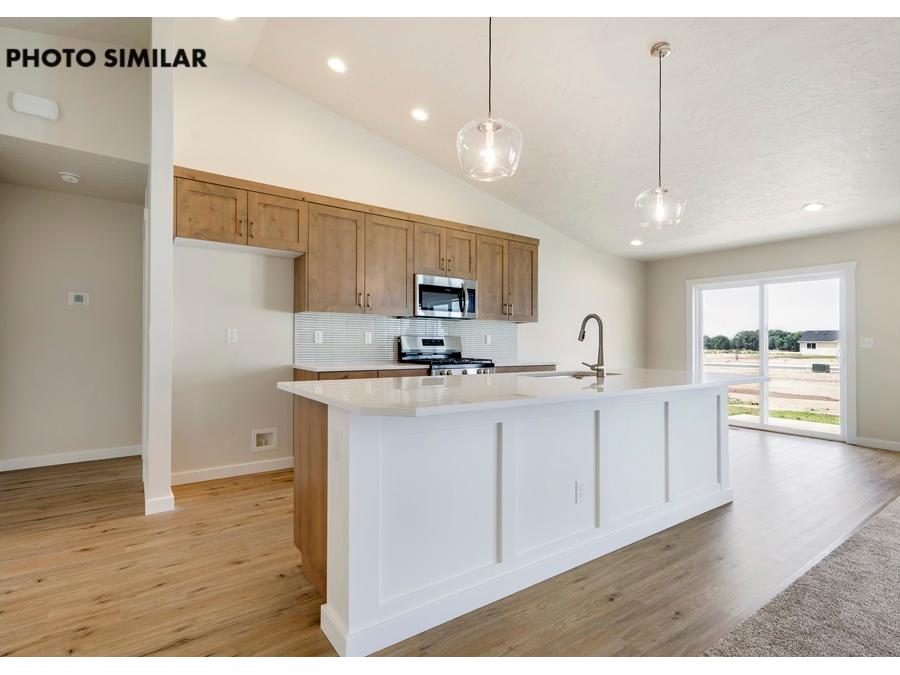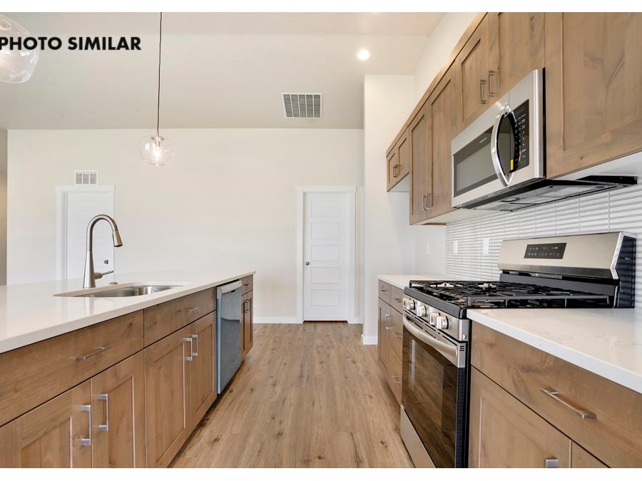 This beautifully built home features an RV bay, ideal for storing recreational vehicles or extra equipment. The kitchen is designed with elegant quartz countertops, a stainless steel farmhouse sink, and high-quality stainless steel appliances,. Step outside to a covered patio, great for relaxing or hosting guests. Enjoy a west-facing backyard that captures beautiful sunsets and provides natural evening light. The sales price does not include the buyer's agent compensation. We are happy to add buyer's agent compensation to the sales price. Photos are similar