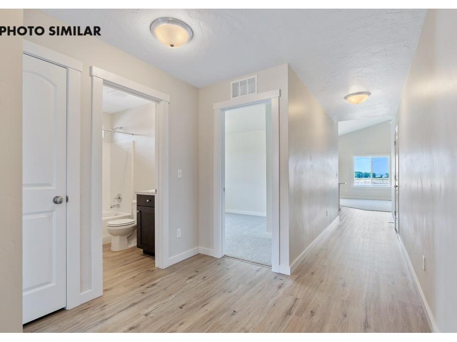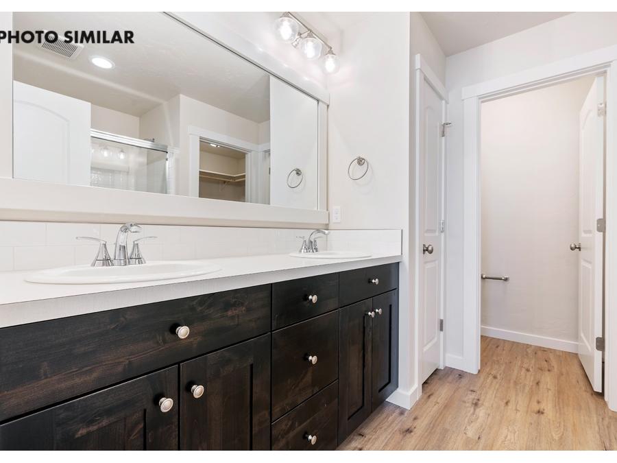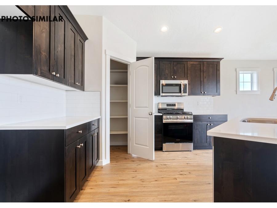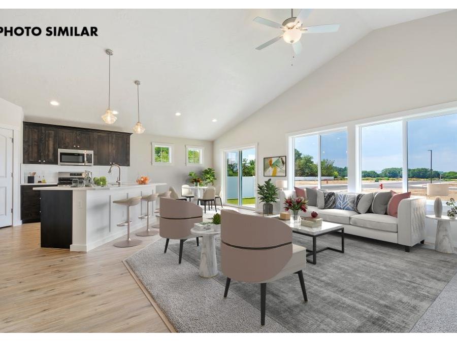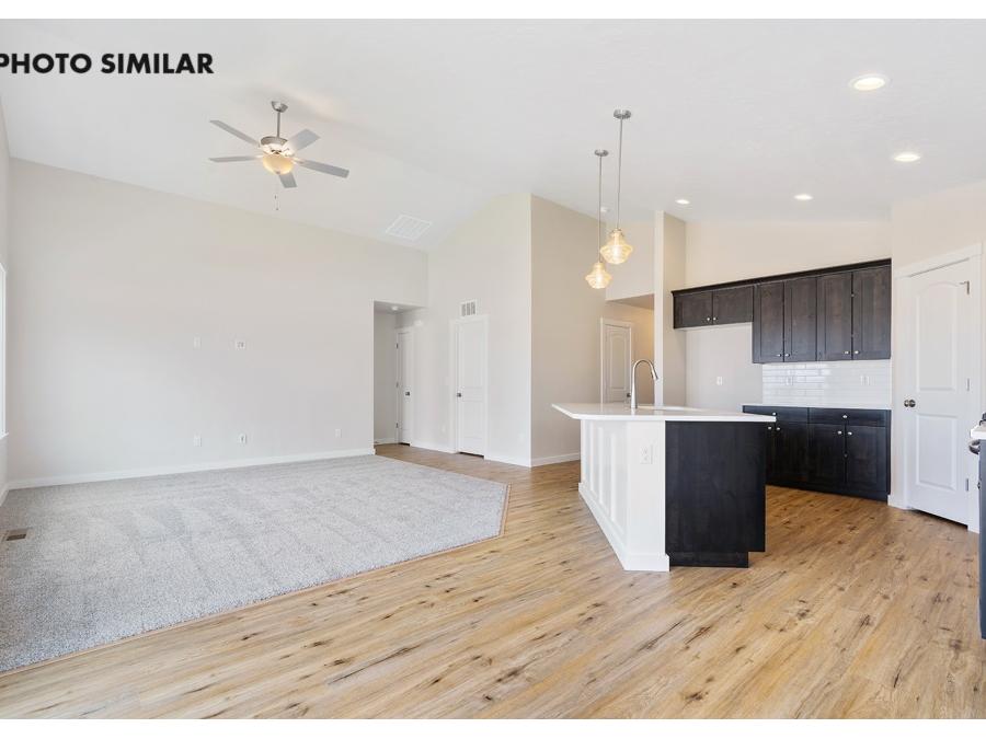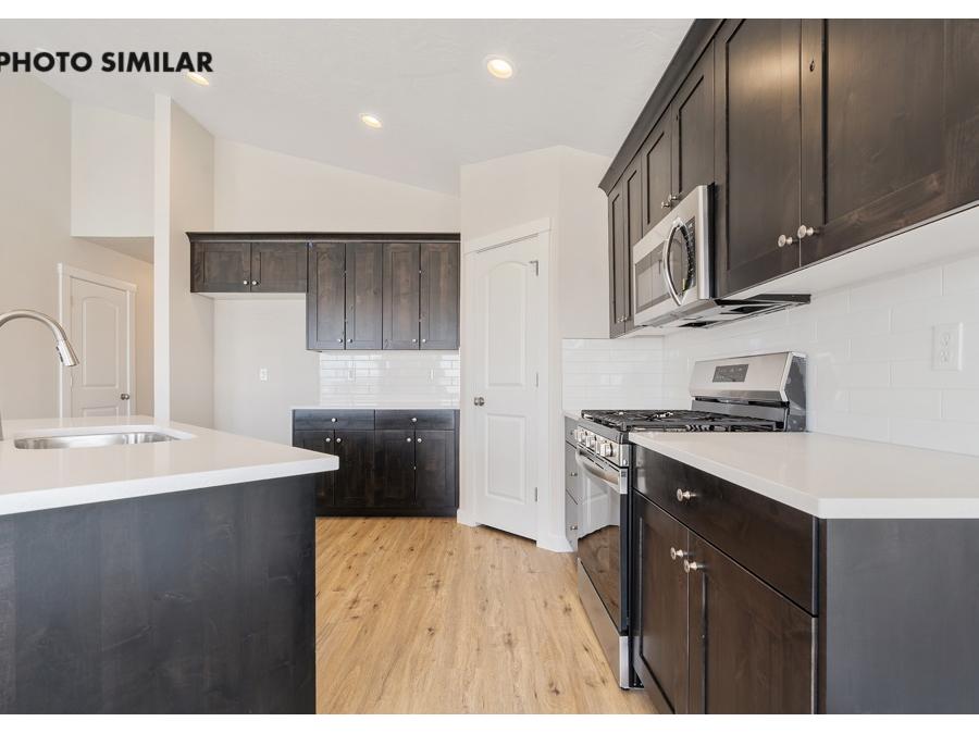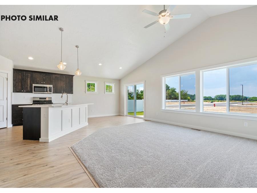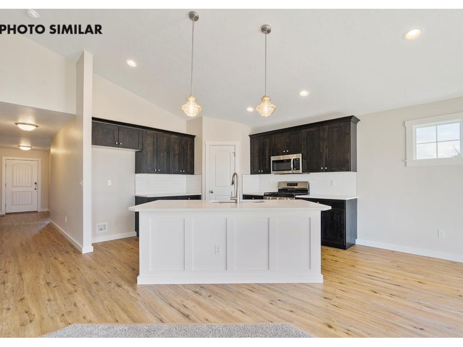 New, never-occupied home located in the desirable Dagger Falls community. This thoughtfully designed residence features a spacious 3-car garage and a north-facing front yard and fully landscaped front and back yards. Inside, the open-concept great room creates a welcoming and functional living space. The kitchen is equipped with elegant quartz countertops, a full tile backsplash, a corner pantry, and stylish finishes throughout. Additional highlights include full rain gutters and natural gas for efficient living. The sales price does not include the buyer's agent compensation. We are happy to add buyer's agent compensation to the sales price. Photos are similar